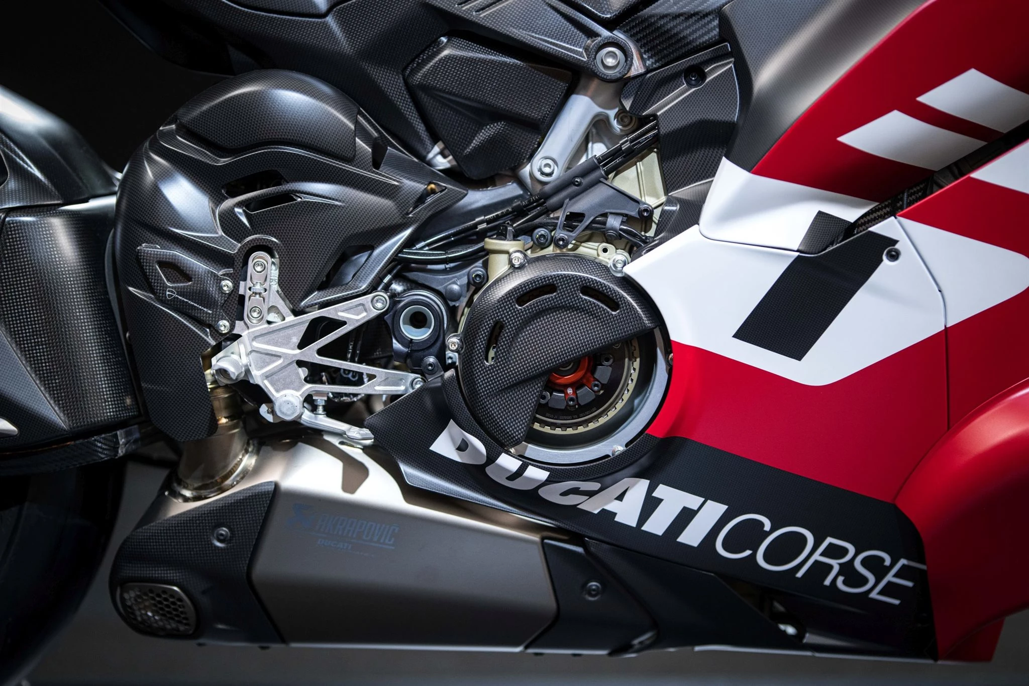 Auch die Schwinge besteht vollständig aus Carbon ein Bauteil, das im Serienbau nur äußerst selten in dieser Form zu finden ist. Ihre hohle Struktur erfordert einen hochkomplexen Fertigungsprozess, bei dem unter anderem mit aufblasbaren Balgen gearbeitet werden muss. Zusätzlich integriert Ducati einen QR-Code direkt in die Struktur, der eine lückenlose Rückverfolgbarkeit jedes einzelnen Bauteils ermöglicht.