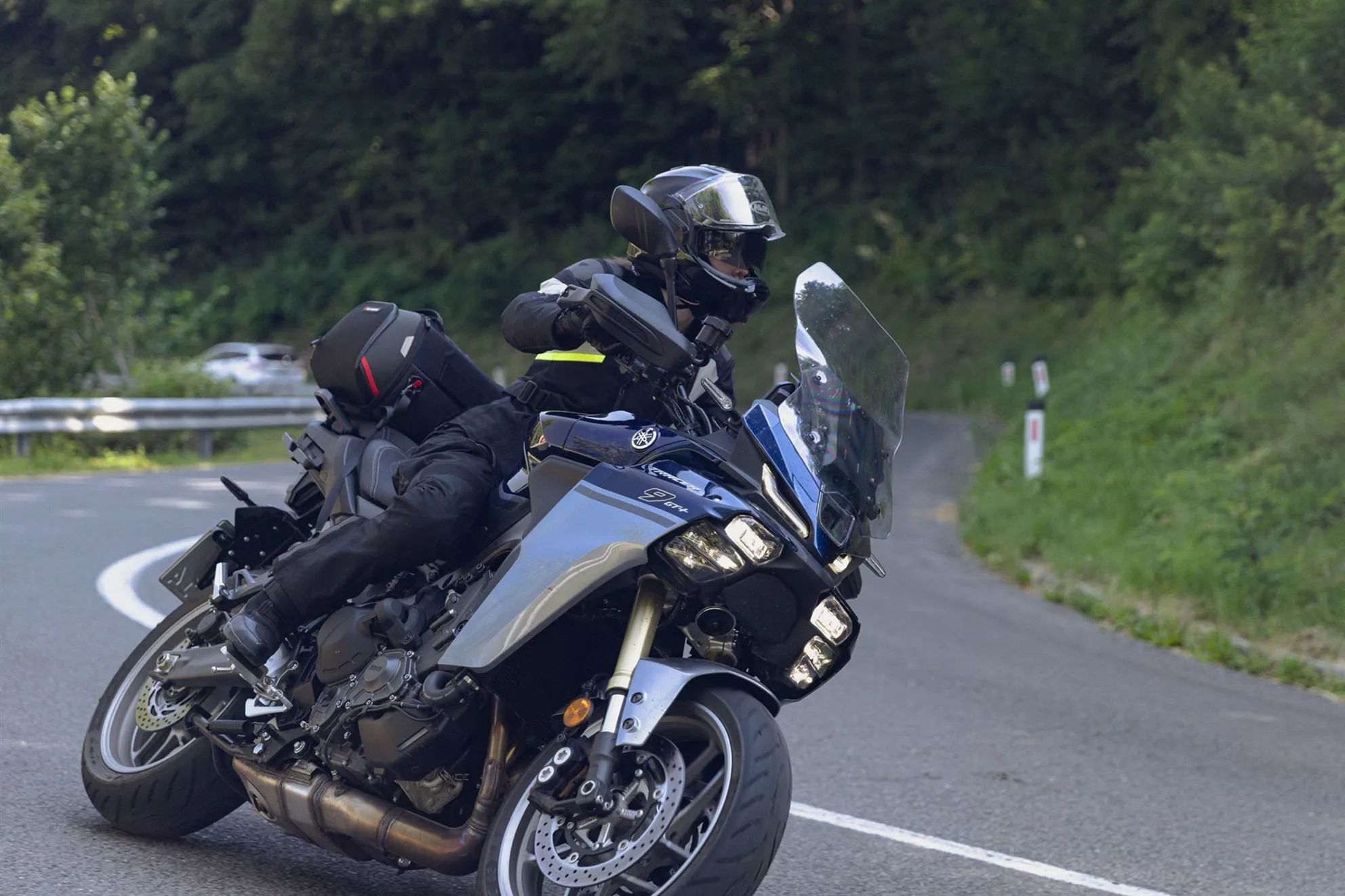 Die Yamaha Tracer 9 GT+ fühlt sich dagegen in schnellen Kurven überlegen an. Ihr semiaktives Fahrwerk passt sich permanent an wechselnde Straßenbedingungen an und sorgt selbst auf rauem Asphalt für beeindruckende Stabilität. Die Triumph verlangt hier etwas mehr Körpereinsatz, wirkt aber keineswegs träge - beide Motorräder bleiben agil und spaßorientiert.