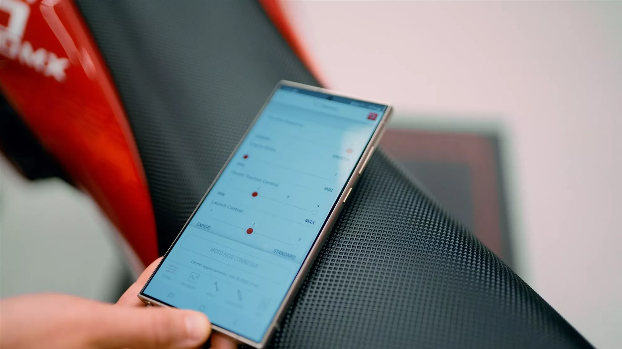 This led to the development of the Cross Link app, which connects maintenance data, riding styles, and settings. Giulia Lotti, Project Manager for Electronics, explains, "Since the bike doesn't have a display, the app acts as the interface between rider and machine. It adjusts maintenance intervals and allows tuning of throttle response, traction control, and launch control, providing suspension setup suggestions based on registered rider weight and skill level."