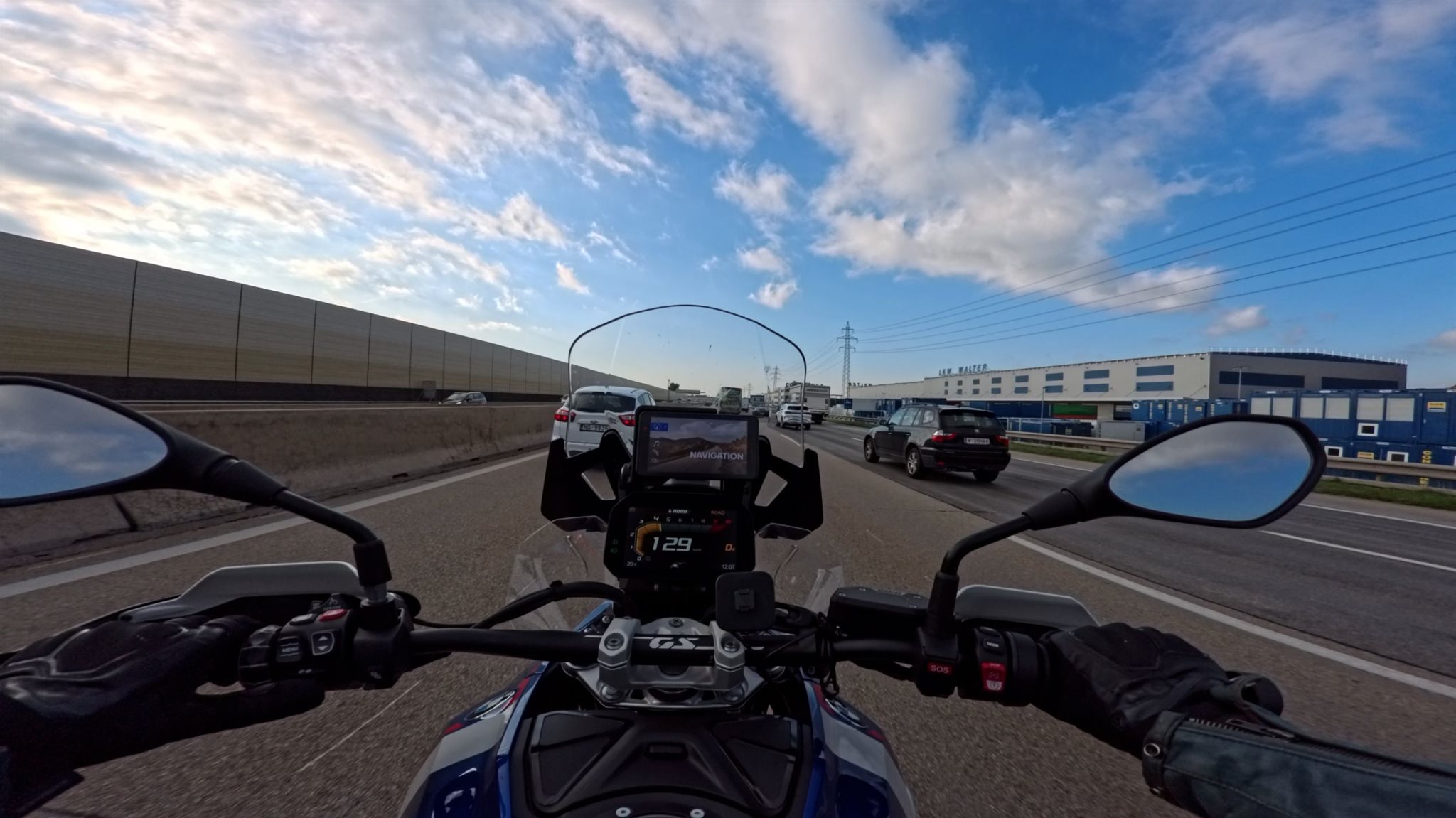Plus des deux tiers des 10 000 km ont été effectués par la GS au quotidien. Ce quotidien était surtout marqué par près de 200 km d'autoroute par jour, et c'est là que la GS se révèle être un véritable compagnon de longues distances : confortable, stable, avec une excellente protection contre le vent. Sur peu de motos, le vent et les intempéries se font aussi peu sentir que sur la GS avec toutes ses fonctionnalités de confort. Le régulateur de vitesse radar est également très utile aux heures de pointe, que ce soit pour suivre les déviations de chantier ou dans l'interminable zone à 80 km/h de l'autoroute urbaine de Vienne. Seule remarque lors de la conduite normale sur l'autoroute, la distance réglée du radar, même dans le réglage le plus court, incite parfois à un comportement imprévu des autres usagers. Les voitures s'insèrent dans l'espace laissé devant ou certains conducteurs tardent à libérer la voie de dépassement, et en trafic dense, la logique de grande distance peut être parfois peu pratique.