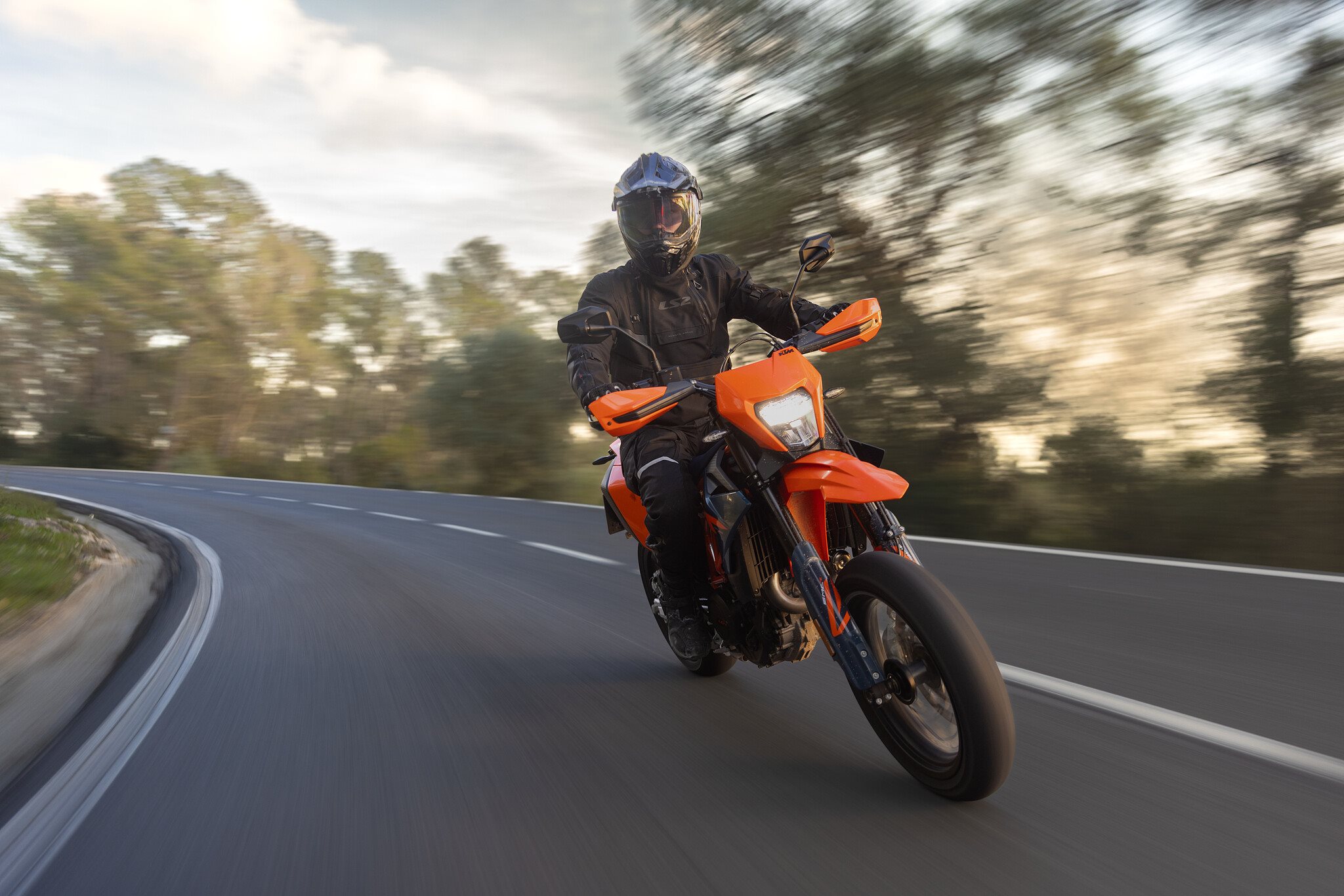 W okolicach Barcelony, na krtych drogach w głbi ldu, szybko pokazuje, o co chodzi w tym motocyklu: zwinne prowadzenie, mocny singiel i to typowe uczucie Supermoto, gdy z łatwości wchodzi si w zakrty. Wspomnienia z mojej własnej przygody z Supermoto wracaj. Znam pierwsz 690 SMC jeszcze sprzed niemal 20 lat dlatego jest imponujce, jak to podejście si rozwinło. Nowa generacja pozostaje wierna swojemu charakterowi, ale wydaje si dojrzalsza, precyzyjniejsza i bardziej nowoczesna niż wiele jej poprzedników.