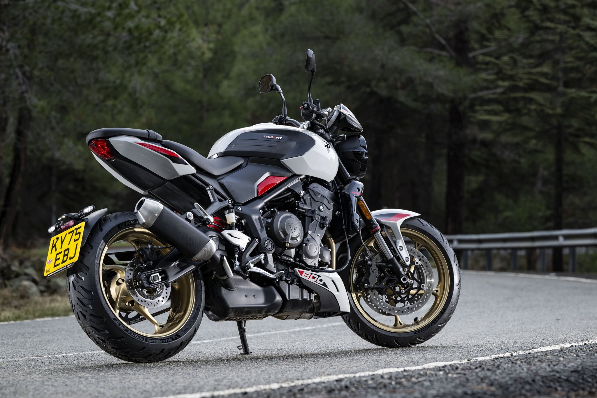 Com a nova Triumph Trident 800, a Triumph amplia a família Trident com um modelo estrategicamente posicionado na categoria intermediária. A Trident 800 combina o design de um roadster com um novo motor de três cilindros de 798 cc, um chassi dinamicamente otimizado e um pacote tecnológico completo, incluindo ABS em curvas, controle de tração em curvas, quickshifter, piloto automático, conectividade Bluetooth e três modos de pilotagem. Além disso, com um peso total de 198 kg quando cheia (ou seja, abaixo de 200 kg), ela promete diversão sem medo, seja na cidade, em estradas rurais ou em viagens mais longas.