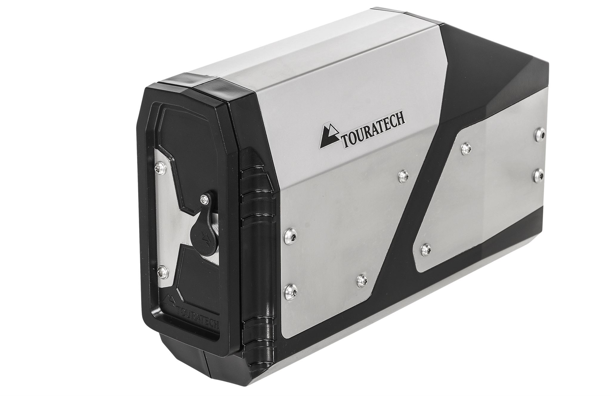 Nástrojová schránka kombinuje robustné plastové puzdro s vysoko pevným nerezovým upevnením. Touratech uvádza, že je vyhotovená v odolnej voči striekajúcej vode verzii, ktorá je vhodná na cestovanie aj každodenné použitie. Upevnenie prebieha pomocou špeciálnych svoriek priamo na nosiči Touratech. Schránka je kompatibilná s kuframi ZEGA Evo a môže byť použitá s namontovanými aj bez namontovaných hliníkových kufrov. Poklop je úplne odnímateľný, zabezpečený proti strate a uzamykateľný, čo umožňuje pohodlný prístup.