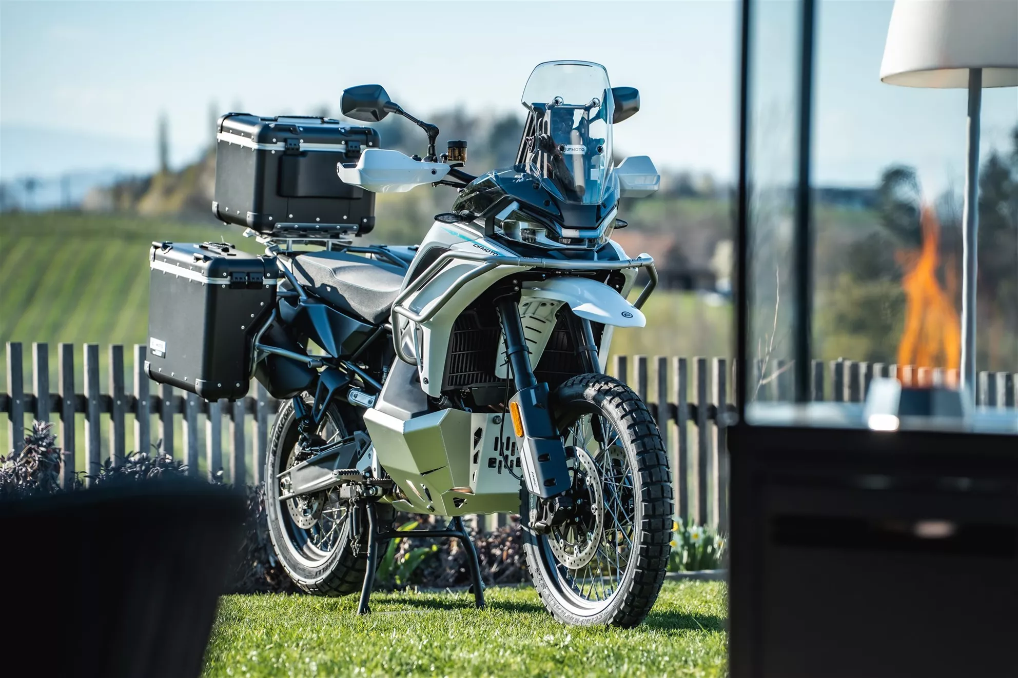 946-kubični vrstni dvovaljnik globoko brunda z odraslim zvokom, razvije 112 KM pri 8.500 vrt./min in doseže največji navor 105 Nm pri 6.250 vrt./min. Gre za agregat, ki je vedno prisoten in dobro nadzorovan, z razvojem moči pa deluje bolj nežno kot njegov na papirju za sedem KM šibkejši KTM-ov kolega. Če želite resnično izkoristiti dodatno moč, je treba motor zavrteti do visokih obratov, a vseeno teče harmonično, odlično se poda potovalnemu motorju in vedno ponuja rezerve. Sprememb obremenitve skoraj ne opazite, menjalnik prestavlja natančno, pri čemer serijski Quickshifter z Blipper funkcijo zelo pomaga. Na splošno motor deluje nekoliko spredaj težji, kar podpira vodljivost pri vstopu v ovinke in naredi CFMOTO za motor s 21-palčnim prednjim kolesom resnično okretnega.