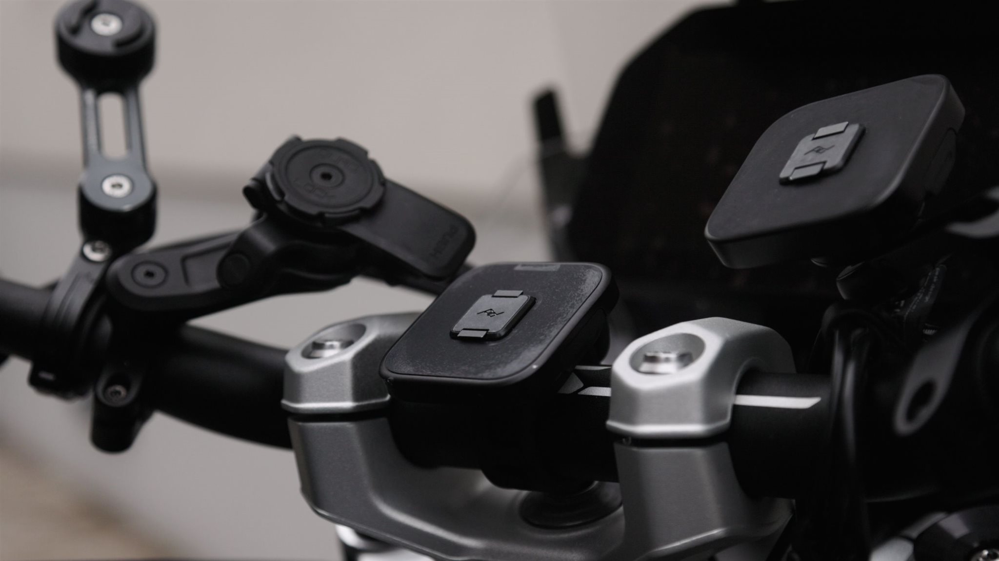 Motosiklet, bisiklet, araba veya duvar - Peak Design, rakipleri gibi hemen her kullanım alanı için geniş bir tutucu yelpazesi sunuyor. Motosikletler için tipik olarak ayna, gidon ve vidalı tutucular bulunur, bu Peak Design için de geçerli. İlk iki tür, farklı çaplar için kauçuk takviyelerle birlikte gelir, böylece bu tutucuları neredeyse her bisiklete monte edebilirsiniz. Sadece çok kalın gidonlar - örnein BMW R 1300 GS - gidon kelepçesinin sınırlarına ulaşır, ancak bu dier üreticiler için de geçerlidir. Peak Design'ın bu soruna getirdii çözüm, örnein, herhangi bir alete ihtiyaç duymadan kullanılan, kauçuk bant ve kancalı evrensel tutucudur ve her gidona çok hızlı ve basit bir şekilde monte edilebilir.